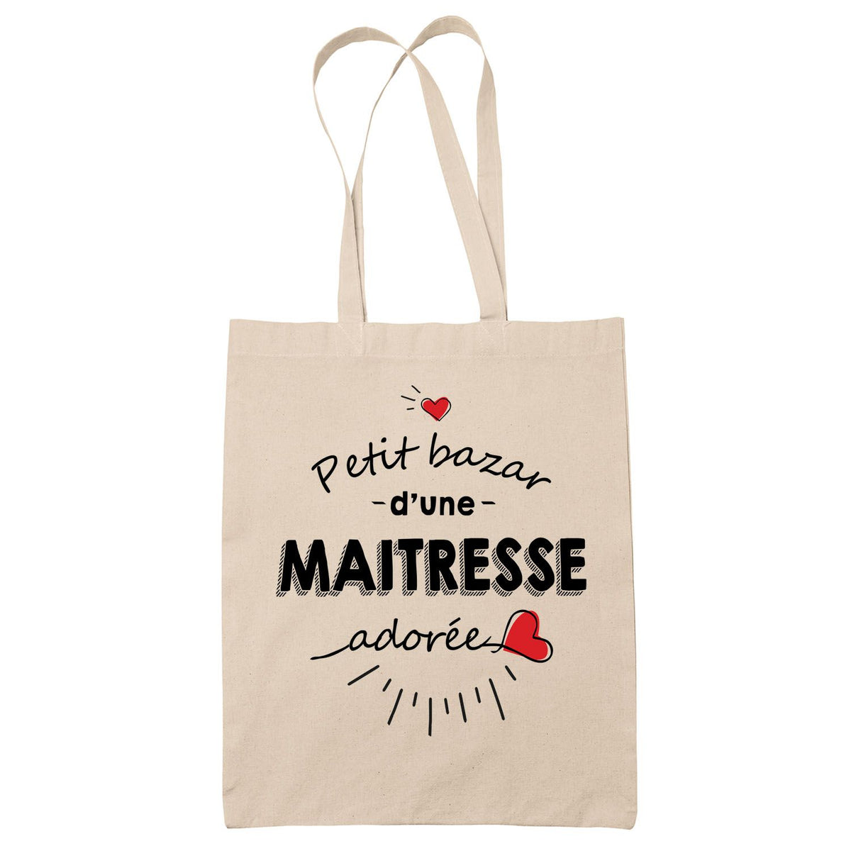 Ce sac tote bag adorable est un cadeau amusant pour une maîtresse bien-aimée. Avec l'inscription "Petit bazar d'une maîtresse adorée", il ajoutera une touche de charme à son quotidien.