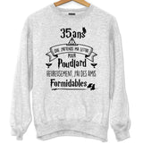 Sweat Anniversaire 35 Ans Que j'attends ma Lettre pour Poudlard heureusement Que J'Ai des Amis Formidables | Pull Cadeau Humour Fun drôle pour Fan de sorciers